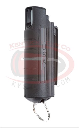This hard key case personal defense pepper spray product fits easily in a pocket or purse and is ideal for women self defense. Featuring glow-in-the-dark locking safety cap, UV dye and 11 grams, or 5 short bursts that spray up to 10 feet.