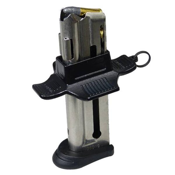 - Designed to load/unload .22 LR single stack wide body magazines with side button
