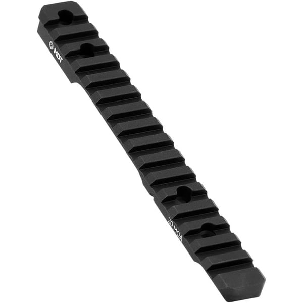 MDT Picatinny Scope Bases are a reliable solution for mounting a scope to your bolt action rifle. It is machined from 6061-T6 aluminum with a durable hard-anodized finish and precision engineered to match your rifles receiver perfectly. The built in 20 MOA inclines provides additional elevation adjustment for your scope and is a great option for hunting rifles, PRS rifles, or general long-range shooting rifles.