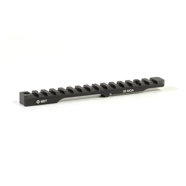 MDT’s Scope Base Picatinny Rails are designed to make the mounting of your optics easier. They are machined from 6061-T6 aluminum, then hard-anodized black for a durable finish. The underside of the rails are profiled to allow the rail to be mounted flush on the receiver and to match the geometry of the ejection port. These rails are designed with a 20 MOA incline providing additional elevation adjustment from your scope*. A recoil lug has been integrated in the underside rail profile on models where the action’s design allows for this feature.