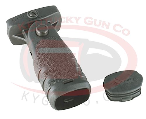 The React Folding Grip (RFG) is a compact textured vertical grip designed to deploy in either a vertical or horizontal position and provides a positive grip surface with wet or gloved hands. This grip allows the support hand to apply rearward pressure keeping the weapon shouldered, yielding better muzzle control and accuracy. This is the grip you want if your objective is low viz operations, easy storage, and/or use of a bipod without interference.