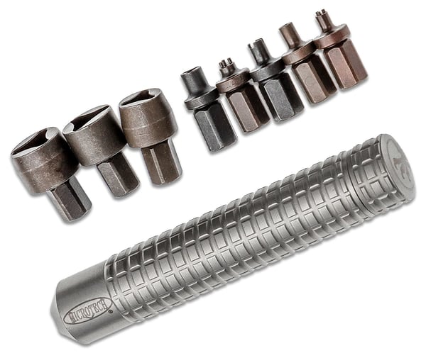 Introducing the Microtech Tool Kit—this set of bits features a handheld 303 Stainless Steel driver as well as 8 interchangeable bits, spanning various Microtech knife models and years. The Tool Kit has bits for: Ultratechs (older and newer models), UTX-85s, UTX-70s (older and newer models), Troodons, Combat Troodons, Diracs, Dirac Deltas, LUDTs, and Sigils; it also includes glass breaker bits for Ultratechs, Combat Troodons, and Dirac Deltas. The bits are sold only as a set and not individually.
