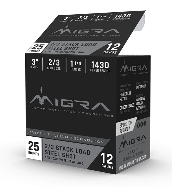 Migra Combinational Load is the answer to multiple hunting situations. The engineered formula delivers uniform patterns and consistent bulk densities that deliver increased kill-ratios with absolutely no fillers. Combined with our patent-pending technology and carefully selected shot combinations Migra shells are deadly and reliable.