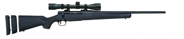 The classic styled Mossberg Patriot Compact looks great on the gun rack and feels great when shouldered. Attractive, accurate and affordable, say hello to the Mossberg Patriot bolt-action rifle. It has the patented LBA trigger which is user adjustable from 2 lbs to 7 lbs. It has spiral-fluted bolts with knurl pattern to ensure smooth, comfortable and reliable cycling. It has a 20" barrel with recessed crown to ensure accuracy and durability. It comes with a dropbox magazine for convenient loading and unloading. This model comes with a 3-9x40mm scope and no sights.