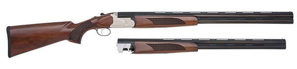 There is nothing like the feel of a sleek over-and-under shotgun in your hands, especially when the flush of a cackling rooster explodes from cover so close by you can feel the pulses of air from its powerful wingbeat. The Mossberg International Silver Reserve II Field combo features blued barrel which has a bead sight, wide vent rib, chrome-plated chamber and bore, and beautifully scrolled silver receiver with a black walnut stock. The combo also includes two sets of five Field choke tubes.