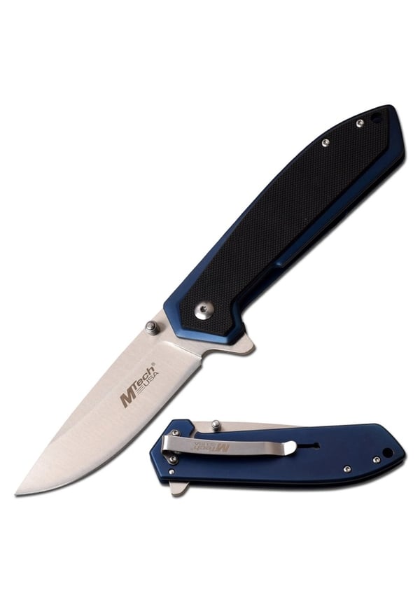 MTECH USA Manual Folding Knife 3.25" Drop Point Blade | Blue G10 Handles