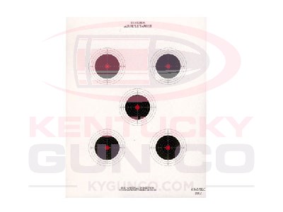 10 Meter (33') 5 Bull Red Center NRA Air Rifle Target Modified from NRA AR-5/5. 5 bull's eyes. Five 1 1/4" diameter bull's eyes. 1-10 count, Each Center is Red, Rings 4-8 are black in each bull's eye. 7" X 9" tag board. Sold in packs of 100.