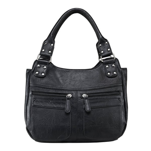 Faux leather Hobo purse featuring four front pockets (two with zippers) and the primary CCW compartment is located on the back side of the purse with two zippers on either side for easy access to the holster.