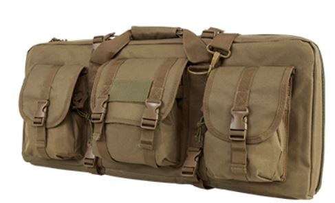 This 28" long firearm case from NcSTAR neatly holds two AR or AK pistols, subguns, AOW, or folding carbines securely and safely. Each internal compartment has two diagonal side pockets for each end of the firearms to fit into, and two hook and loop straps to secure each firearm while it's inside the case. An internal padded divider protects the weapons from each other during travel. Three large external pockets allow you to store your magazines and additional gear. Get out there with NcSTAR.