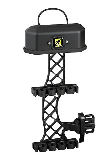 The Apache Grid quiver is a lightweight, compact quiver featuring a soft-touch finish that reduces glare and dampens vibration. The Grid features a fast and easy quick-disconnect mount for one-hand removal of the quiver from the bow. The Apache Grid quiver accommodates a wide variety of arrow shaft diameters, from aluminum down to the slender Deep Six Easton Injexion shafts. It is the perfect quiver to use on your next hunting endeavor, holding up to 5 arrows. The Grid quiver is available with red, gold or fluorescent green molded hood inserts (not included).