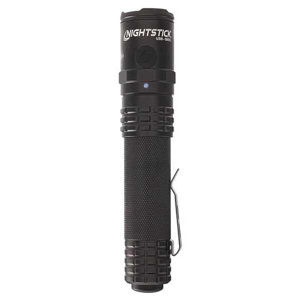 You never need a flashlight until you do. And if that time comes and you're without a light source, you could be in serious trouble. That's why Nightstick offers high-quality flashlights of all types. The USB-588XL USB Dual-Light Rechargeable Tactical Flashlight features a flashlight rated at 1100 lumens, in addition to a 350-lumen downward-facing flood light. In Dual-Light mode, the USB-588XL puts out a combined 850 lumens. This compact metal tactical flashlight is multi-functional, cycling between high, medium, and low modes. Additionally, the USB-588XL is rated IP-X7 waterproof and features a discretely sleeved collar that opens for direct USB charging. The built-in charging indicator turns from red to green when fully charged. Included is a 2-foot USB-C charging cable, lithium-ion rechargeable battery, and CR123 battery carrier (batteries not included) for added convenience.