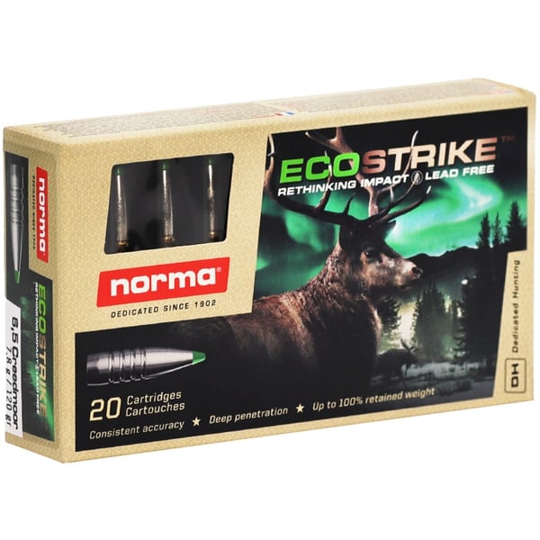 Norma's Ecostrike series ammunition is engineered to meet the needs of hunters who value performance and environmental sustainability. Each round features a 120-grain bullet designed for exceptional accuracy and terminal performance. The 6.5 Creedmoor caliber is renowned for its long-range capabilities and effectiveness on medium to large game, making it a top choice for serious hunters.