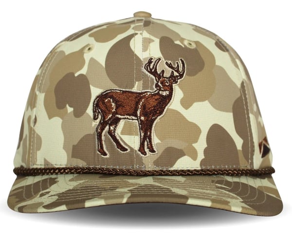 The Vintage Whitetail Deer hat is built for hunters who appreciate classic style paired with modern performance. Constructed on the Riverside 6-panel platform, this cap features a structured front for a crisp profile and laser-perforated back panels for enhanced airflow. The old-school camo pattern is printed on lightweight performance micro ripstop fabric, while a detailed deer embroidery with a premium 10,000-stitch count delivers standout visual appeal.