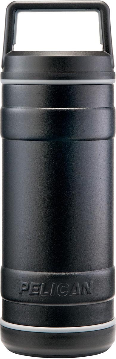 Pelican’s latest line of drinkware is a go anywhere, do anything, must have addition to your way of life. Ruggedly engineered with 18/8 pro grade stainless steel, featuring a sweat-proof, powder coated finish that ensures your hands won’t slip from condensation, plus a non-Slip rubber base for increased durability. We’ve also made sure that our new Pelican™ Bottles are effortless to transport, as each spill-proof lid is also an easy-carry handle. Just loop this through your fingers or attach it to your favorite backpack – the contents will be stowed safely inside until you’re ready for your next sip or pour. Able to hold hot or cold beverages, Pelican Bottles come in your choice of black or white, with size capacities of 18 oz., 32 oz., and 64 oz. Guaranteed for Life.
