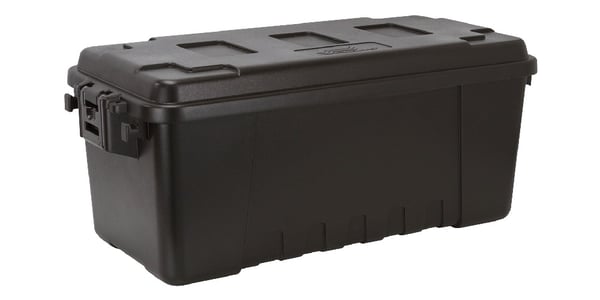 Conveniently store and transport all your hunting and outdoor gear in one convenient location. This high-impact plastic trunk is a great mid-size: 68 quarts total capacity. The fully removable lid fits tightly on the base and clamps down in place with heavy-duty latches. The bin also features padlock tabs for added security. Grab as many as you need; these trunks are specifically designed to stack with multiple units.