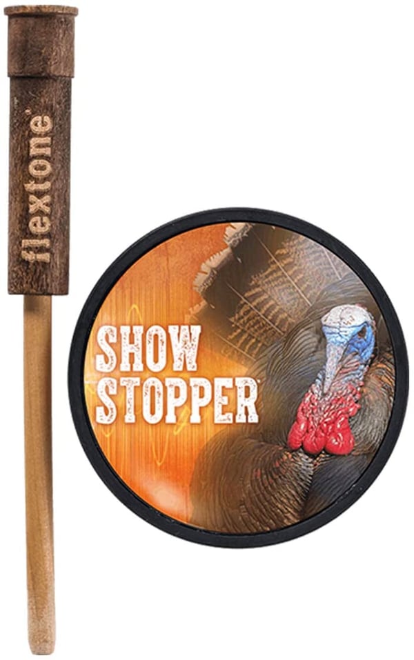 The Show Stopper turkey call sports an glass over glass surface for super realistic sounds. It's these sweet sounds that allow hunters to sweet talk gobblers into fully committing and coming those last few crucial yards. Whether you are hunting the swamps, open timber or just need to get that ol' gobbler's attention, the Show Stopper can bring him running. The call comes with the Magnum Hickory Striker that's perfectly balanced to achieve the most seductive yelps and whines, content clucks and purrs, or aggressive cuts and cackles. It also includes a course sandpaper and abrasive conditioning pads to assist you in scratching the glass surface to get it perfectly tuned and ready for that mean ol' gobbler....... Shows Over!