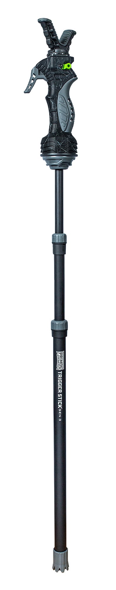 Like every Trigger Stick, the new Primos Trigger Stick Gen 3 adjusts to your desired height with just one hand and the pull of a trigger. The new Quick Detach Yoke System with Integrated Lock makes it easier than ever to switch from gun to optics and back again. Smoother panning action helps you rotate, scan and find your perfect shot effortlessly. Its the next level of Trigger Stick to give you the next level of confidence in every shot in all terrain standing, sitting, or kneeling! Our patented Trigger Stick has been upgraded to perform even better. By far its the quickest most effective shooting stick to give you solid shooting support. We have advanced our design by incorporating a quick detach yoke system that allows for easy transitions for a shooting stick to a smooth panning support for optics or cameras. The Extreme Leg Angles give you the versatility of being able to set up quickly on any terrain from nearly any position. The Primos Trigger Stick Gen 3 is the ultimate solution for making your shot accurate no matter where you are.