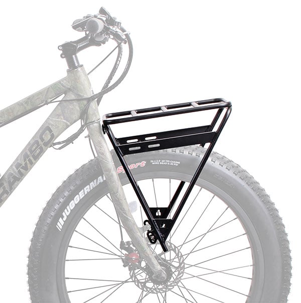 Get additional tie-down storage space with this rugged, light-weight extra-large rack designed for the front of your Rambo bike.