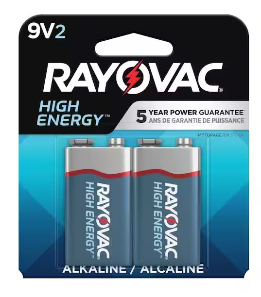 Power your household with Rayovac High Energy 9 Volt Alkaline Batteries. Engineered for long-lasting performance, these Rayovac 9V batteries are ideal for the high use devices in your home, from your wireless microphone to high-powered toys and smoke detector batteries. Rayovac batteries are rigorously tested to ensure they do what they say they'll do-plain and simple. These alkaline 9V batteries last up to 5 years in storage. Each 9 Volt battery is made for dependable performance. For reliability in the devices you use each day, count on Rayovac for 9 Volt batteries.