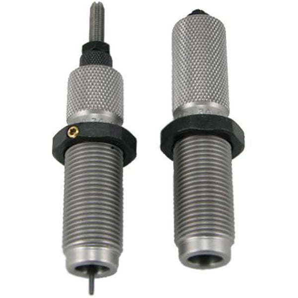 For bottleneck-style cartridges. Includes: full-length sizer die with expander-decapping unit & seater die with bullet seater plug.