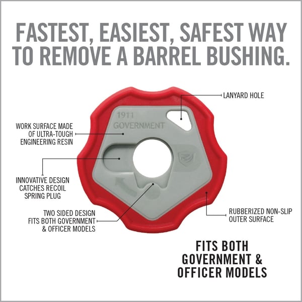 Disengaging the barrel bushing on your 1911 has never been faster or easier. Press down & turn. The 1911 Smart Wrench keeps the spring and spring plug corralled. No more surprise high flying recoil spring while disassembling your 1911. It’s so easy, it’s almost like cheating.