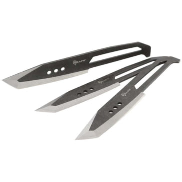 Hit the bullseye every time with these perfectly-balanced throwing knives. The Reapr 3 Piece Chuk Knives set is ideal for camping, parties, barbecues, and other outdoor activities. The 4.25 (108 mm) stonewashed finished blades withstands the elements and are built for throwing accuracy. The Chuk knives are constructed from 420 stainless steel and fit securely into the 1680D ballistic sheath with MOLLE attachment.