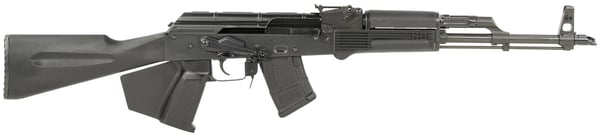 This version of the American made classical AK-47 rifle (7.62x39mm) measures 35.25" in overall length. It features a polymer butt stock, upper and lower hand guards and shark fin pistol grip. It also has a black oxide nish, heat-treated mil-spec stamped receiver 4150 Nitride Barrel, 14x1 LH thread, machined scope mount side rail, adjustable front and rear sight and a bolt hold open safety lever.