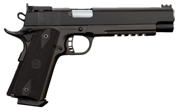 The Rock Island PRO Match Ultra 6" is a target grade pistol ready for competition right out of the box. It's built by the master gunsmiths in the Rock Island Armory Medallion shop with a mission to deliver best priced match grade 1911 available. Chambered in 45 ACP with 8-round capacity, it features LPA TRT1 adjustable type rear sight and high visibility fiber optic front sight. Includes skeletonized hammer and factory 4- to 6-pound trigger with adjustable over travel stop. Comes in a fully parkerized finish with checkered wood grips. Shop with KYGUNCO for the best selection, competitive pricing, and exceptional customer service. Experience the difference that comes with buying from a trusted outdoor retailer with over 20 years of experience in the industry.