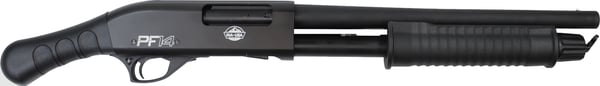The PF14, As simple as a Pump Action Firearm 14" Barrel. Sticking with the basics for a great for home defense or a day at the range firearm. Comes with F-Grip, sling adapter, a forend strap. Chambered for 2 3/4" or 3" Magnum loads. Another great addition to the RIA USA Firearm Line.