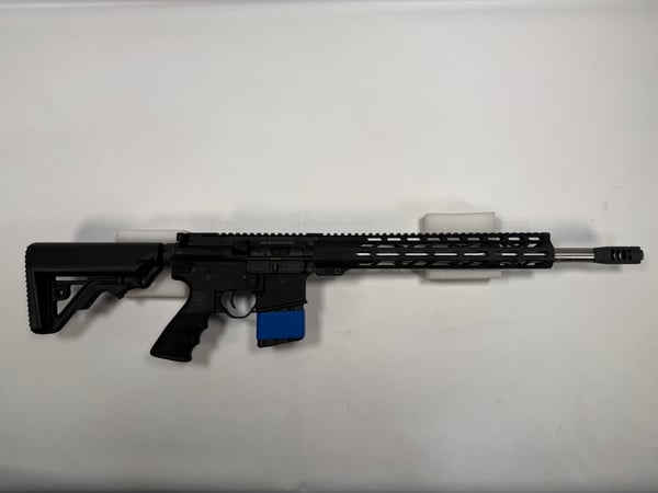 This used Rock River Arms LAR-15M All Terrain Hunter is chambered in .450 Bushmaster and features a 16" stainless steel barrel with a free-float M-LOK handguard. Built on the LAR-15M platform, it includes an adjustable RRA Operator CAR stock. Shows normal signs of regular use and functions as intended.