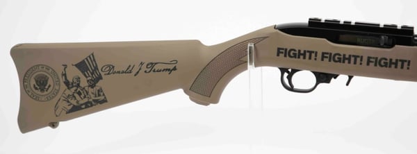 This Limited Edition rifle features Donald Trump's iconic image etched into the stock along with the quote from Trump also on that day, "FIGHT! FIGHT! FIGHT! In addition, it features President Trumps famous signature along with the Seal of The President of The United States. The Ruger 10/22 is America's favorite .22 LR rifle, celebrated for its versatility across various shooting applications and it is a fitting vehicle for this unique tribute.