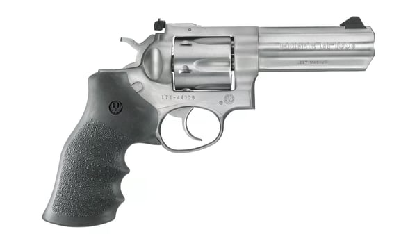 Ruger® GP100® is a rugged and reliable double-action revolver that serves equally well for field carry in the outdoors, home defense, law enforcement, or target shooting. The GP100 revolver is built on a robust, medium/heavy frame of stainless steel. To withstand recoil from heavy 357 loads, a triple-locking cylinder is locked into the frame at the front, rear, and bottom so it stays aligned without getting sloppy over time. A full-length rib along the top of the barrel adds weight, and provides ample steel to dovetail the front sight, making the sight easily replaceable. The rear sight is fully adjustable for windage and elevation, and the factory ramp front sight is easily seen, while providing minimal interference when drawing the sidearm from a holster. (3" barrel model has a fixed rear sight and a pinned front sight.) The angle of the GP100's peg-style grip frame, and the recoil cushioning Hogue® Monogrip®, greatly absorb recoil and allow the shooter to stay on target while firing the revolver in double-action mode. A full-length ejector rod shroud puts extra weight out front to reduce muzzle flip, allowing for faster sight acquisition on follow up shots. The Ruger GP100 has a smooth double-action trigger pull, and a clean, crisp break in single-action. Stainless steel construction provides corrosion resistance, and low maintenance in the backcountry. The solid frame of the GP100 has no side plate, and the revolver disassembles into large subassemblies with no tools, aiding to ease of maintenance in the field. As with all Ruger Double-Action Revolvers, the GP100 features the patented Ruger transfer bar mechanism that provides an unparalleled measure of security against accidental discharge—the revolver can be dropped directly on its hammer and will not fire without the trigger being pulled all the way to the back. The Ruger GP100 Double-Action Revolver is solidly built sidearm that will serve a lifetime of hard use. Made in the USA. Shop with KYGUNCO for the best selection, competitive pricing, and exceptional customer service. Experience the difference that comes with buying from a trusted outdoor retailer with over 20 years of experience in the industry.