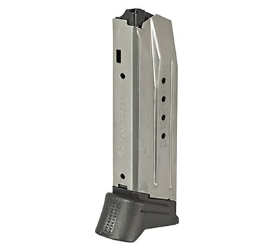 Nickel-Teflon plated steel, 10-round, 9mm Luger Genuine Ruger Factory Magazine is compatible with the Ruger American Pistol Compact. Magazine comes with the extended floorplate installed and a flush floorplate in the package.