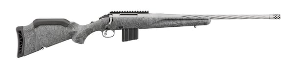The gun metal grey cerakote finish on this rifle extends its durability, offering protection against corrosion and wear. The ergonomic design of the gray splatter Gen II synthetic stock ensures a stable and comfortable grip, enhancing shooter accuracy and control. A Picatinny scope base comes pre-installed, allowing for the quick and secure attachment of optics, broadening the rifle's application for precision targeting or varmint control. Additionally, the 1/2x28 threaded barrel enables the easy addition of suppressors or other muzzle devices, making this rifle highly adaptable for various shooting environments.