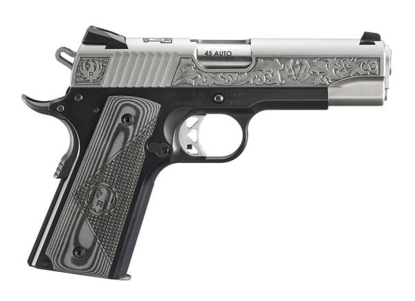 The Ruger SR1911 Southport, CT Edition production will be limited to 500 total units. Featuring an engraved stainless steel slide with bald eagle on the sides with the Ruger logo and "One Lacey Place" adorned on the top of the slide; lightweight aluminum frame and polished titanium feed ramp; positive barrel lock-up; replaceable grip panels and checkered backstrap; skeletonized trigger, skeletonized hammer and titanium firing pin for faster lock time; oversized beavertail grip safety, extended thumb safety and slide stop lever; oversized ejection port and extended magazine release; inspection port allows for visual confirmation of a loaded or empty chamber and a flat mainspring housing and rear slide serrations for a positive grip. Accepts most standard, aftermarket 1911 parts and accessories. Includes two 7rd stainless steel magazines and bushing wrench.