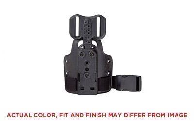 - Thigh plate designed for mounting two Safariland tactical accessories