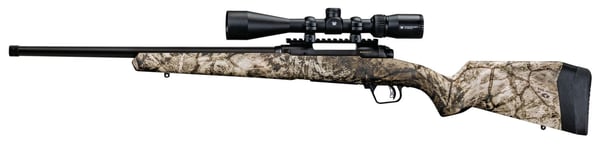 Carnivores are crushed. The Apex Predator XP pairs a Model 110 rifle with a 4-12x44mm Vortex® Crossfire II scope that comes mounted, bore-sighted and ready to hunt. The platform provides accuracy and adjustability like no other package predator rifle thanks to the Savage® AccuTrigger™, thread-in headspacing, floating bolt head and precision button-rifled heavy barrel. Plus, the length-of-pull of its synthetic Mossy Oak® camo stock can be easily adjusted to fit any hunter for better comfort and consistency. The Crossfire II's Dead-Hold BDC reticle makes it easy to place accurate shots at extended range, and the optic is securely mounted to a one-piece EGW 0 MOA rail.