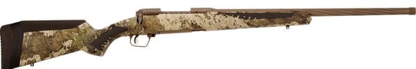 The biggest bulls. The longest shots. With the new Savage® 110 High Country, they're all within your reach. The rifle is built to maximize accuracy with a spiral-fluted barrel and bolt, as well as the Model 110 action secured three-dimensionally along its entire length within the AccuStock™ internal chassis. The AccuFit™ system lets hunters customize length-of-pull and comb height of the TrueTimber® Strata synthetic stock. Plus, the user-adjustable AccuTrigger™ offers a crisp, clean pull critical for making precise shots at extreme distances. The low-friction, coyote brown PVD coating on the barrel, receiver and other critical parts is harder than competing finishes and protects against corrosion and heat. At just 2-4 microns thick, the coating does not interfere with the rifle's tight tolerances.