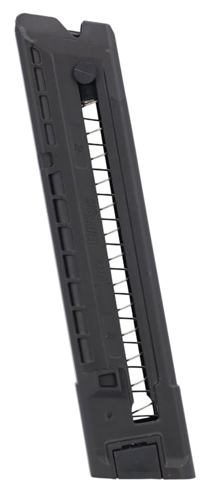 This magazine features a loading assist feature making it easier to load the magazine. Simply pull down slightly on the loading tabs to remove tension from the magazine follower, leaving enough room for one round. Loading one round at a time ensures rounds are properly aligned in the magazine for optimal function.