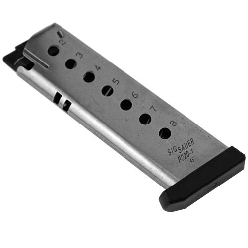 8-round magazine for the SIG SAUER P220 pistols chambered in .45ACP. Fits the full size and carry models. Actual magazine may differ slightly from the image pictured.