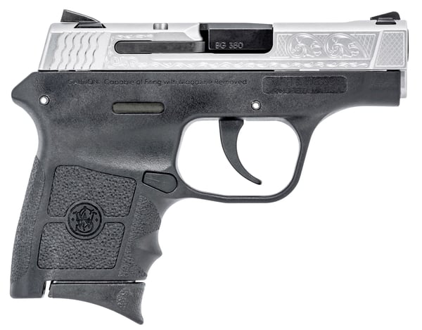 Compact, sleek and ergonomic, the M&P® BODYGUARD® 380 delivers personal protection in an easy-to-carry, comfortable platform. Chambered for .380 ACP, the lightweight pistol features a high-strength polymer frame with a black, matte-coated stainless-steel slide and barrel. The new M&P BODYGUARD 380 retains original design features including a 2 ¾-inch barrel, which contributes to an overall length of 5 ¼ inches and an unloaded weight of only 12.3 ounces making it perfectly suited for concealed carry.