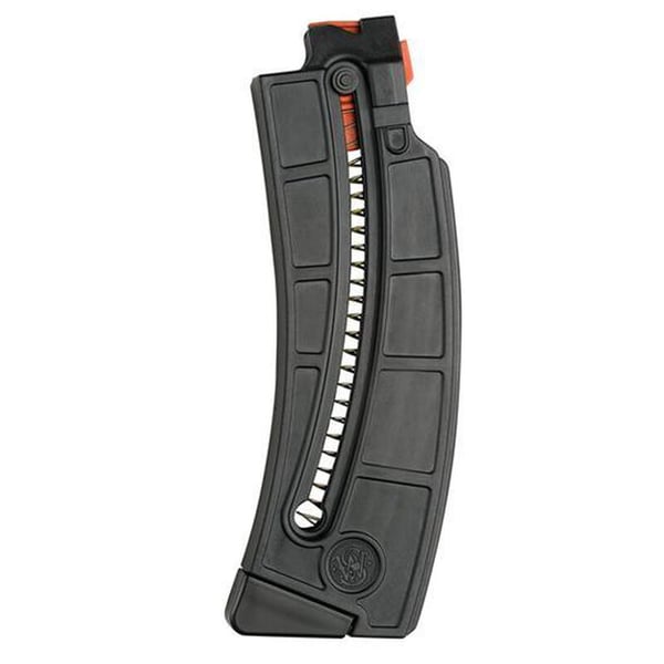 This S&W® magazine is designed to fit the M&P®15-22 .22 LR series of firearms. It features a durable metal spring with a polymer follower. It also features a see through center with a load assist button.