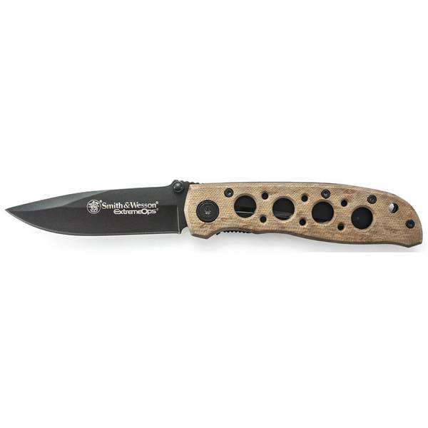 Very sharp and versatile, this Extreme Ops Black Blade Folding Knife from Smith and Wesson is definitely a great buy. It features a high carbon stainless steel titanium coated blade with a drop point making it ideal to perform heavier tasks and a textured aluminum handle with pocket clip ensuring great fit and grip. Smith and Wesson Extreme Ops Black Blade Folding Knife is easy to operate with one hand and can last a lifetime because of its high quality design.