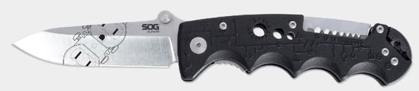 Get 'charged up' with the Kilowatt, the first working theme knife designed for the electrician, homeowner, contractor, or anyone who might need to strip wire in a pinch. Three separate systems address wire from fine multi strand all the way up to cable. There is a stripper bar for wire sizes of 10-22, an adjustable spring-loaded UTP/wire stripper in the back, and just in case, our patent pending hole stripper that uses the main blade. Schematic grips, hi voltage tower clip, insulator thumb stud, and a blade with receptacle engraving are signatures that make this a very unique liner lock knife.