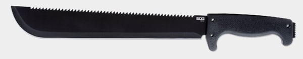 Our machetes are exciting additions to the SOG family. Its not should I have a machete but which size will work for me. Machetes are one of the more useful edged tools in the world. They have cleared brush, and blazed trails, have chopped wood, made shelters, harvested crops, prepared meals, hunted and protected. Careful attention has been given to the SOGfari to make sure that the weight was right and the handles were comfortable for extended use. Whip them through the air and hear them sing. We've added a real working saw on the back of the blades with teeth that cut deep. Extended out of the back of the handle is a spiked tang for pounding and scraping. There are even holes in the handle to mount lanyards. SOGfari... the go to tool for survival, exploration and adventure!