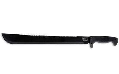 Our machetes are exciting additions to the SOG family. Its not should I have a machete but which size will work for me. Machetes are one of the more useful edged tools in the world. They have cleared brush, and blazed trails, have chopped wood, made shelters, harvested crops, prepared meals, hunted and protected. Careful attention has been given to the SOGfari to make sure that the weight was right and the handles were comfortable for extended use. Whip them through the air and hear them sing. We've added a real working saw on the back of the blades with teeth that cut deep. Extended out of the back of the handle is a spiked tang for pounding and scraping. There are even holes in the handle to mount lanyards. SOGfari... the go to tool for survival, exploration and adventure!