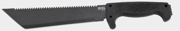 Our machetes are exciting additions to the SOG family. Its not should I have a machete but which size will work for me. Machetes are one of the more useful edged tools in the world. They have cleared brush, and blazed trails, have chopped wood, made shelters, harvested crops, prepared meals, hunted and protected. Careful attention has been given to the SOGfari to make sure that the weight was right and the handles were comfortable for extended use. Whip them through the air and hear them sing. We've added a real working saw on the back of the blades with teeth that cut deep. Extended out of the back of the handle is a spiked tang for pounding and scraping. There are even holes in the handle to mount lanyards. SOGfari... the go to tool for survival, exploration and adventure!