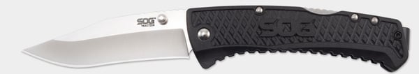 Lightweight lockback folder for general use. The SOG Traction features a satin-finished clip-point blade made from durable steel, paired with a glass-reinforced handle. A low-carry pocket clip keeps it discreet while providing quick access for cutting tasks.