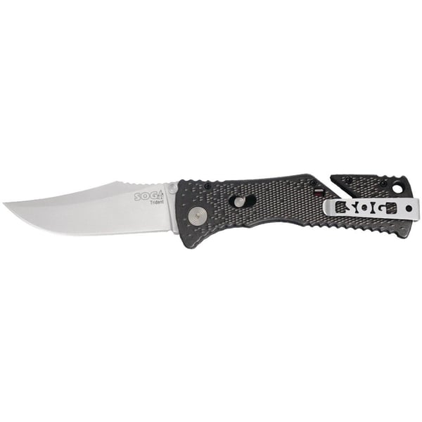 The SOG Trident uses our well-proven means of delivering a knife blade to the open position with S.A.T. (SOG Assisted Technology™) Now using our patent pending Arc-Actuator™, the Trident locks stronger and releases easier. There is also a built-in safety to lock the blade closed. When it shows red, you are ready to go.