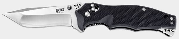 Built upon the M61 Vulcan’s reputation of speed, power, and versatility, the SOG Vulcan is also formidable with a powerful strength of construction. There is nothing weak about the Vulcan. For instance, our patented Arc-Lock™ can hold over 1000 lbs. of force. The full steel liners encased in glass reinforced nylon (GRN) handles give the knife rigidity and durability. The blade is a full .160" thick with tanto shape and includes a double thumb stud and kick for quick, ambidextrous deployment and use. Combining the usability and construction of the knife with a durable san mai VG-10 stainless steel blade make this folder a great addition to the Vulcan name.